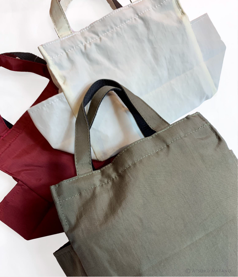 Petit fourre-tout ouvert avec poches extérieur sur chaque côté.