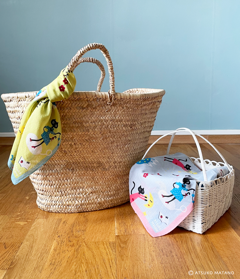 Nos petits foulards sont des carrés de coton fabriqués et imprimés au Japon. Utilisez-les en foulard comme en mouchoir/essuie-main. Vous pouvez aussi décorez l’intérieur de votre maison avec!