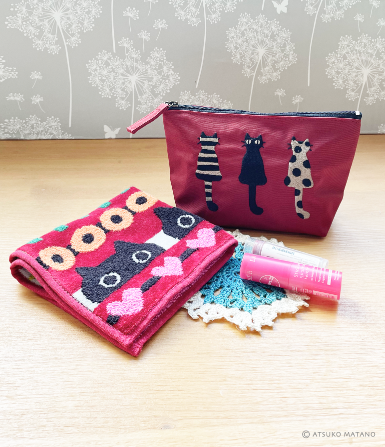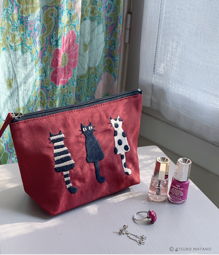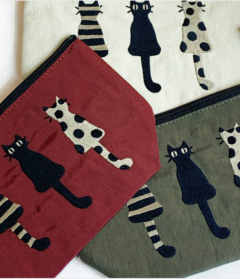 Petite trousse en nylon avec fermeture éclair du trio de chats NAKAYOSHI.